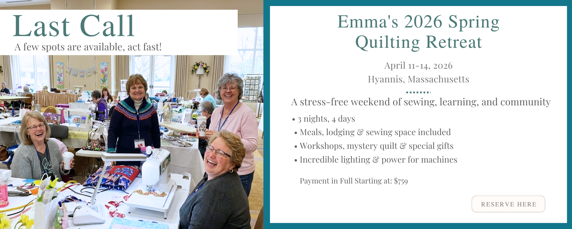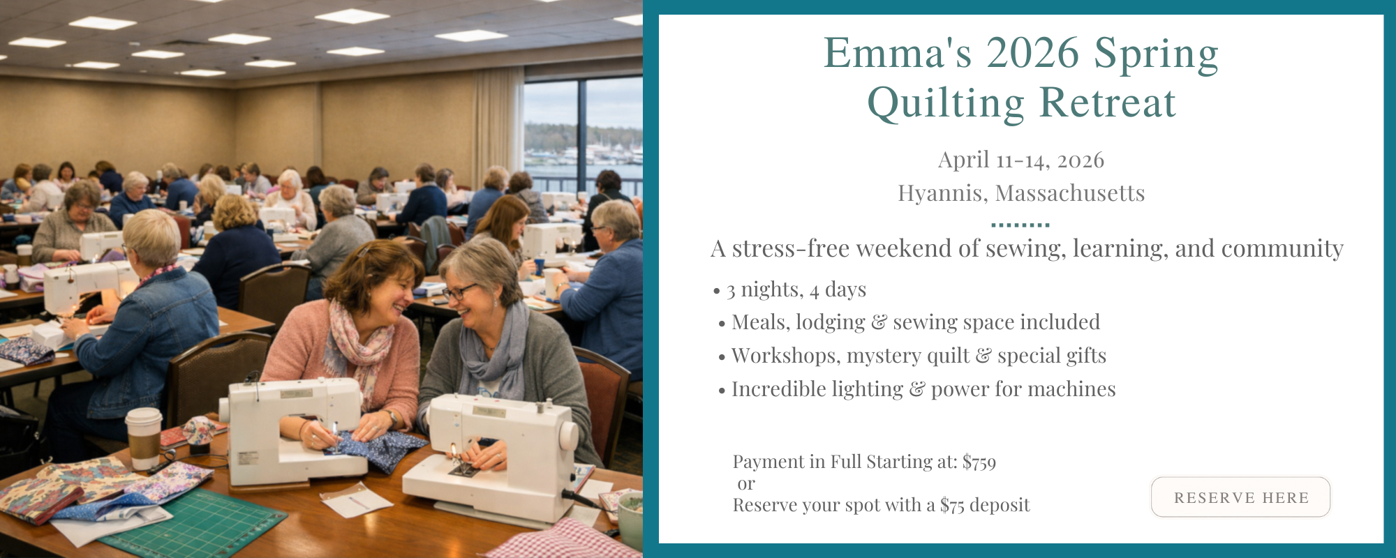 Emma's Quilting Retreat Deposits