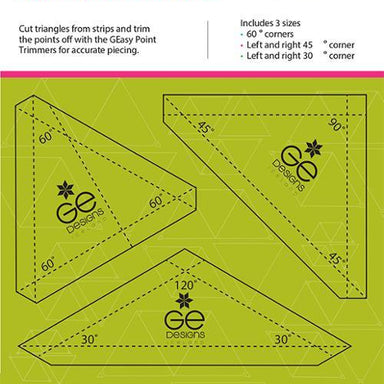 Cut triangles from strips and squares, using your Stripology Rulers and trim the points off with the GEasy Point Trimmers for accurate piecing. Pac...